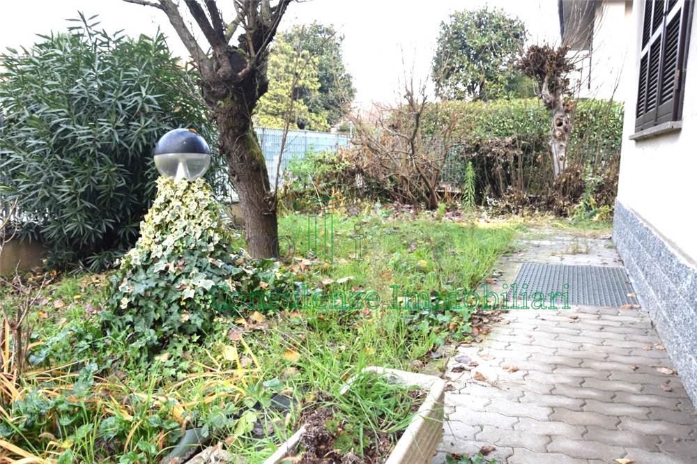 La villa dispone di due ingressi separati, uno per l’accesso all’ autorimessa ed uno pedonale. Dal cancello pedonale si accede alla proprietà dove si sviluppa il giardino di circa 120 mq; la parte frontale del giardino è piantumata con piante di vario genere e pietre decorative, la parte laterale è adibita a giardino con porta finestra della cucina che la collega.