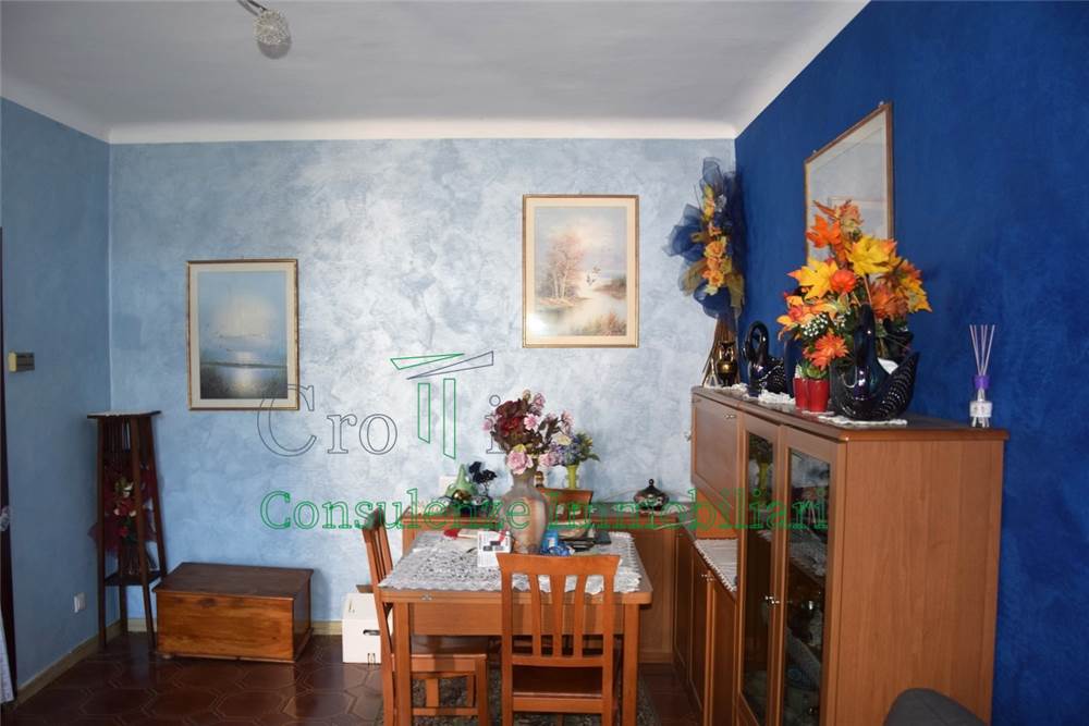 La casa ha la caratteristica di una villetta libera su tre lati, è disposta su due livelli, al piano terra la zona giorno con vano ingresso, soggiorno con accesso al balcone, cucina e un locale cantina/sgombero altezza 3m, con porta finestra che da accesso al cortile retrostante.